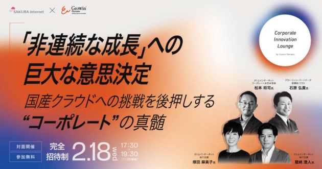 【2/18リアルイベント開催】Corporate Innovation Lounge ~「非連続な成長」への 巨大な意思決定 国産クラウドの挑戦を支える コーポレートの真髄~開催のお知らせ
