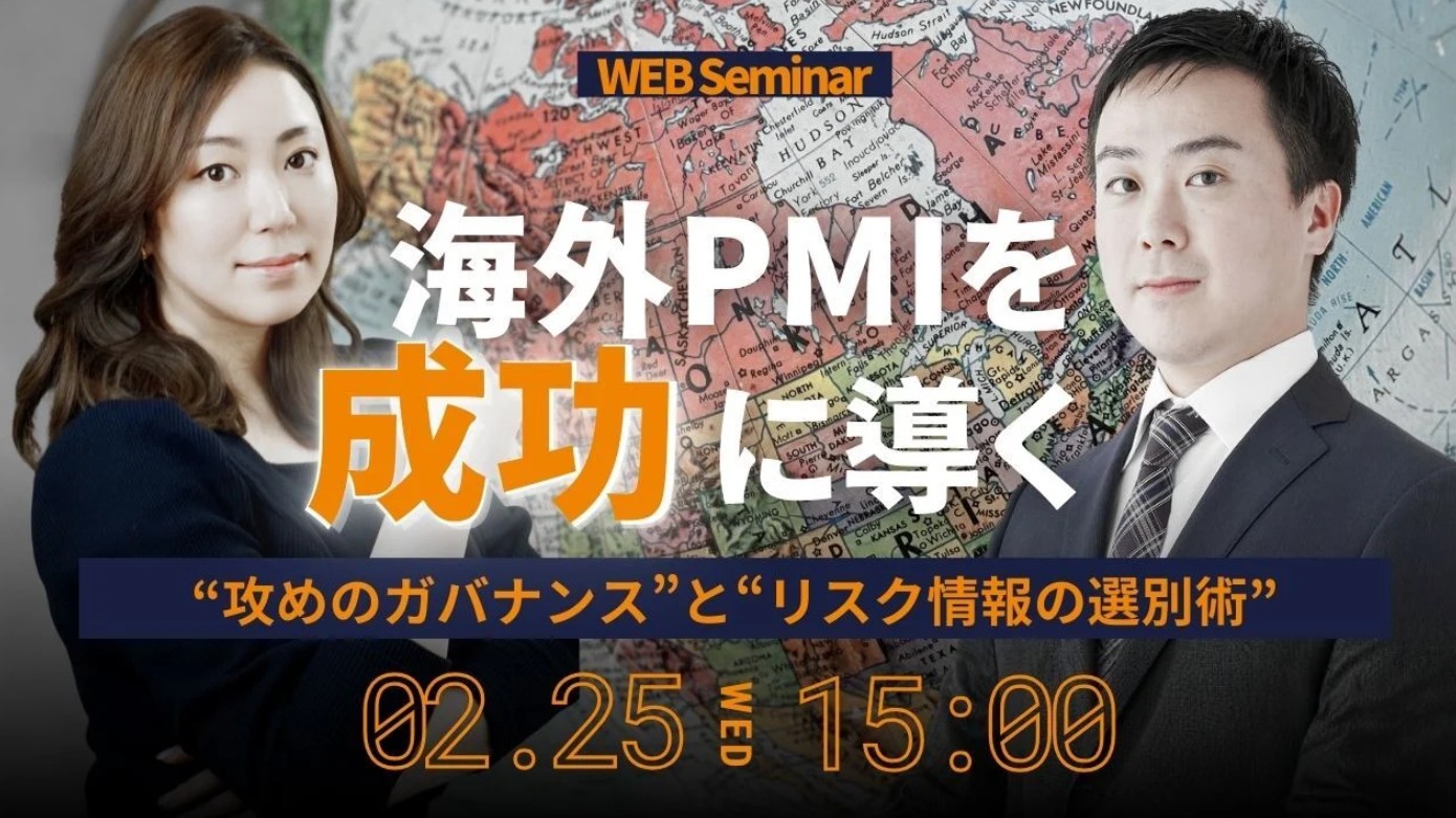 2026年2月25日(水)「海外PMIを成功に導く~攻めのガバナンスとリスク情報の選別術~」セミナーに弊社の小山が登壇いたします。